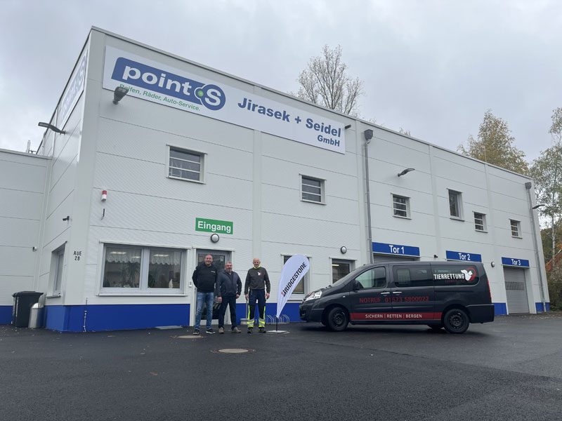Mit vier nagelneuen Winterreifen der Marke Bridgestone unterstützt der point S Betrieb aus der Aue 28 in Chemnitz, zusammen mit BRIDGESTONE die gemeinnützige Arbeit der Tierrettung Chemnitz e.V.